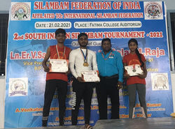 ನಮ್ಮ ವಿದ್ಯಾರ್ಥಿಗಳು ದಕ್ಷಿಣ ಭಾರತದ ಸಿಲಂಬಮ್ ಟೂರ್ನಮೆಂಟ್ 2021@ ಮಧುರೈ, ತಮಿಳುನಾಡಿನಲ್ಲಿ ಭಾಗವಹಿಸಿದರು ಮತ್ತು 4 ಮತ್ತು 2 ಬೆಳ್ಳಿ ಪದಕಗಳನ್ನು ಸಾಧಿಸಿದ್ದಾರೆ